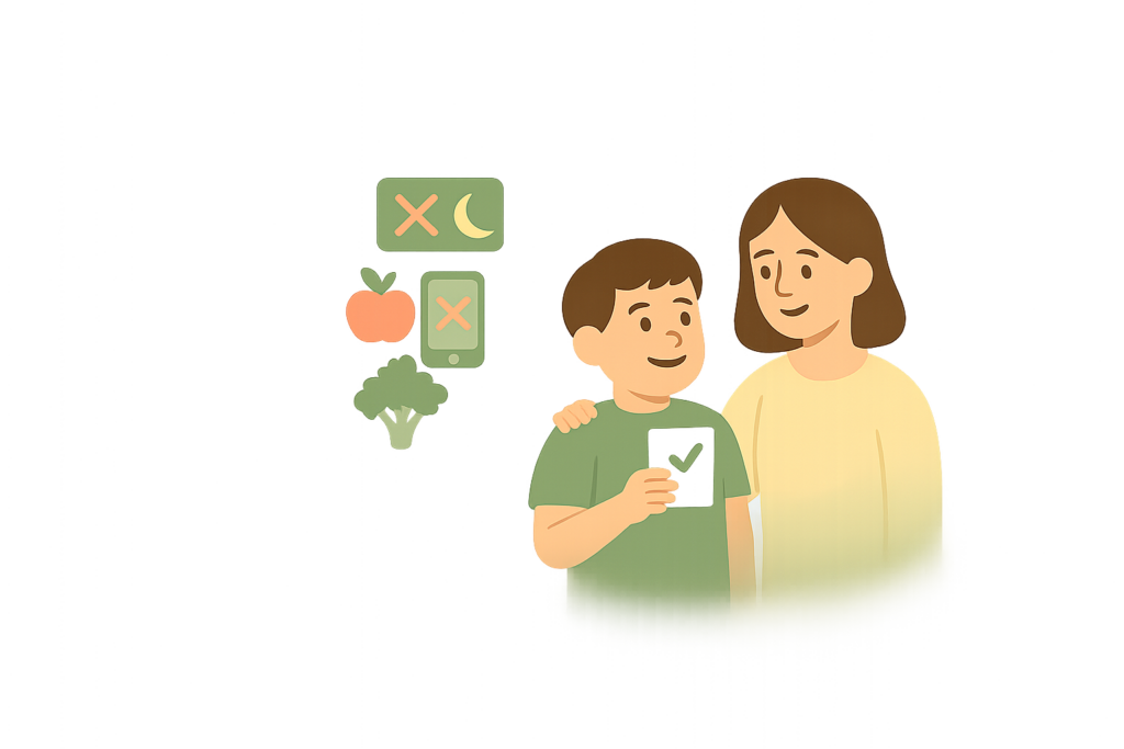 Les changements envisagés doivent être choisis ou négociés avec l’enfant, discutés collectivement et applicables à tous. Ils doivent rester simples, progressifs et réalistes afin de s’inscrire durablement dans le quotidien